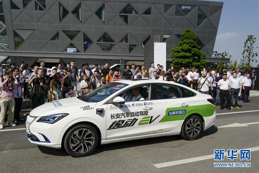 國內首個5G自動駕駛公共服務平臺暨5G自動駕駛開放道路場景示范運營基地在重慶投入使用。這是長安汽車的一臺L4級自動駕駛汽車在啟動儀式現場進行演示(2019年7月26日攝)。新華社記者 劉潺 攝