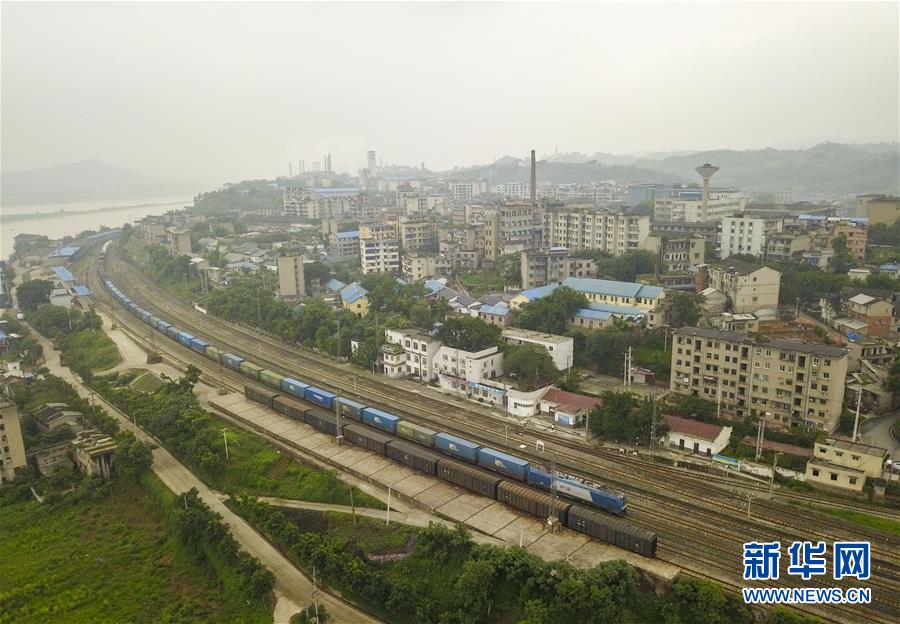 一列貨運列車經過成渝鐵路銅罐驛站(2019年6月11日無人機拍攝)。新華社記者 劉潺 攝