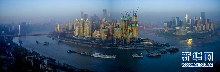 晨曦中的重慶主城區(拼接照片,2017年5月4日攝)。新華社記者 劉潺 攝