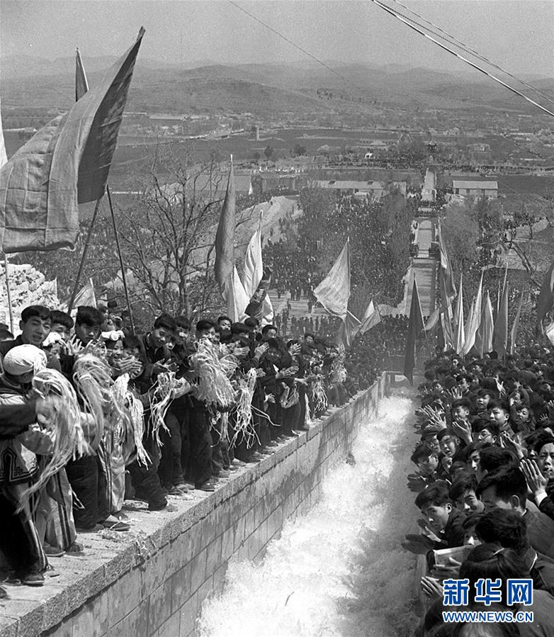 這是河南省林縣(今林州市)人民舉行盛大集會,慶祝紅旗渠竣工通水(資料照片)。1969年7月8日,河南省林縣紅旗渠工程全部建成。新華社發
