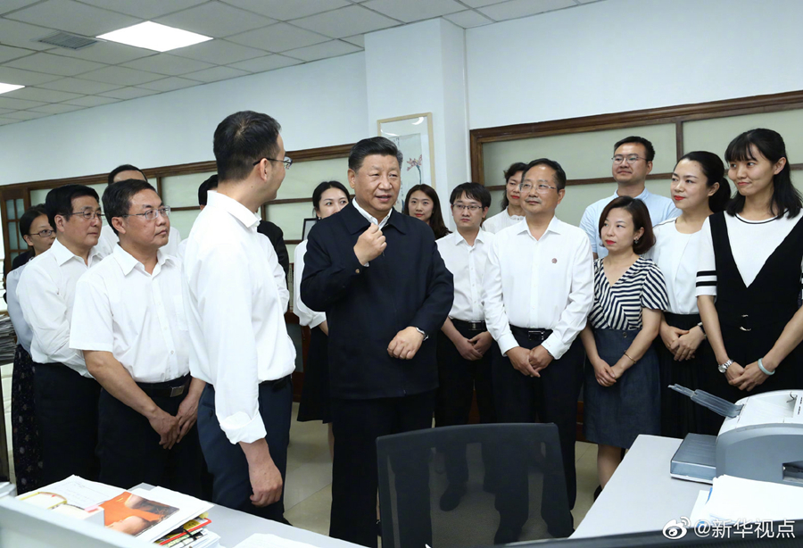 21日下午,正在甘肅考察的習近平總書記來到位于蘭州市區的讀者出版集團有限公司,了解企業歷史沿革、出版發行、經營管理等情況,看望《讀者》編輯部工作人員。習近平對大家說,人民群眾多讀書,我們的民族精神就會厚重起來、深邃起來。要提倡多讀書,建設書香社會。(文字記者:張曉松、朱基釵 攝影記者:鞠鵬、謝環馳)
