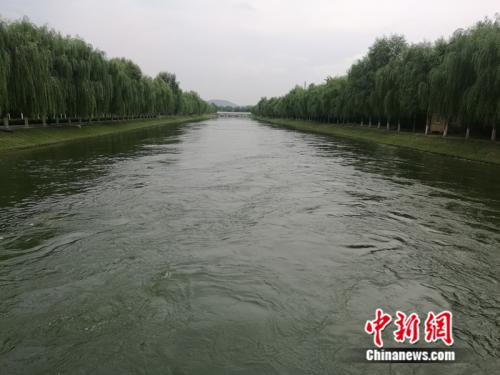 南水進京的路線末端,有一段約800米的明渠,在這里可以看到奔流的江水源源不斷涌入。中新網 張尼 攝