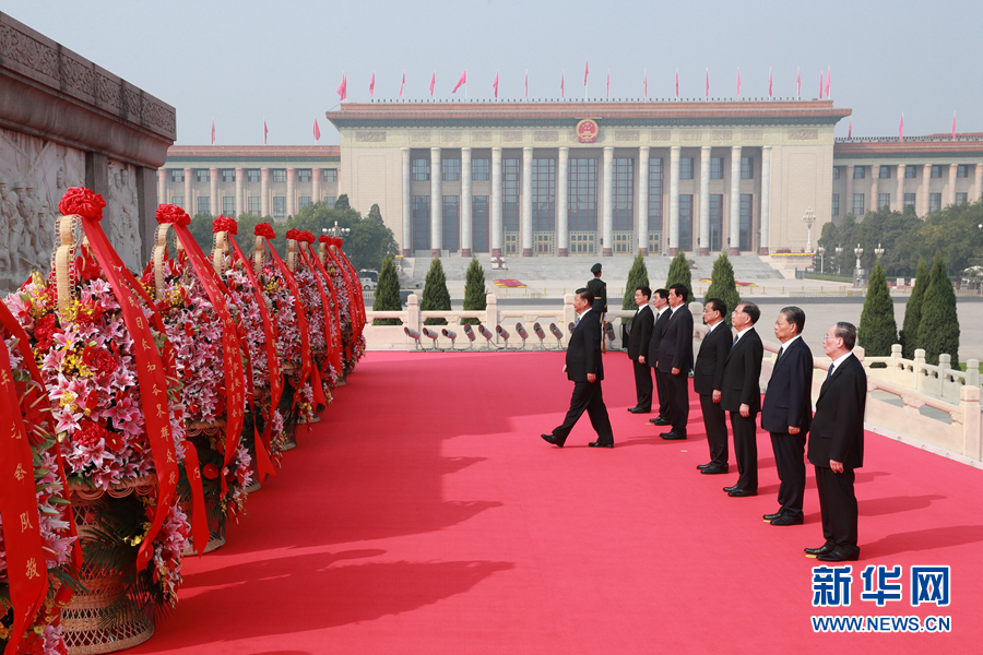 9月30日上午,習近平、李克強、栗戰書、汪洋、王滬寧、趙樂際、韓正、王岐山等黨和國家領導人來到北京天安門廣場,出席烈士紀念日向人民英雄敬獻花籃儀式。 新華社記者 丁海濤 攝
