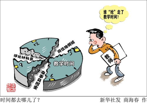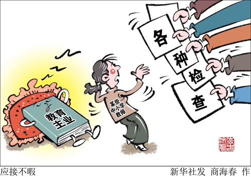 事實上,早在今年3月中辦就發布《關于解決形式主義突出問題為基層減負的通知》,強調今年要解決一些困擾基層的形式主義問題,切實為基層減負?!靶氯A視點”記者近日調查發現,在一些地方的中小學,各種檢查以及與教學無關的活動紛紛進校園,令教師們不堪重負甚至影響了教學工作。