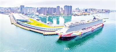 一艘郵輪??吭谏綎|港口集團青島國際郵輪母港。(資料照片)