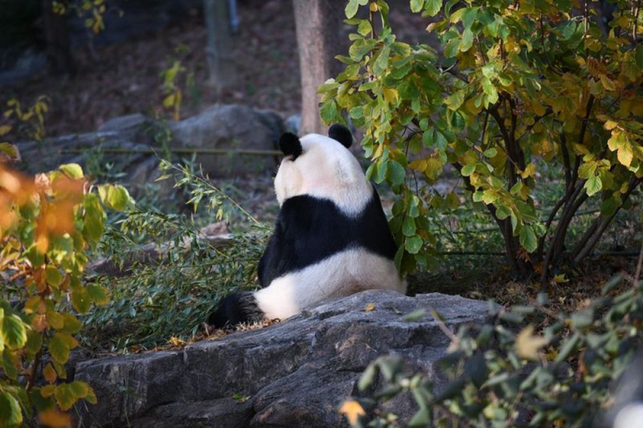 11月13日,“貝貝”在位于華盛頓的美國國家動物園內的“銷魂”背影。新華社記者劉杰攝