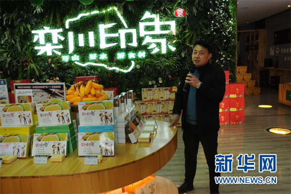 欒川縣農業農村局局長黃正煊為記者介紹“欒川印象”品牌發展及助農情況。新華網 張朝華攝