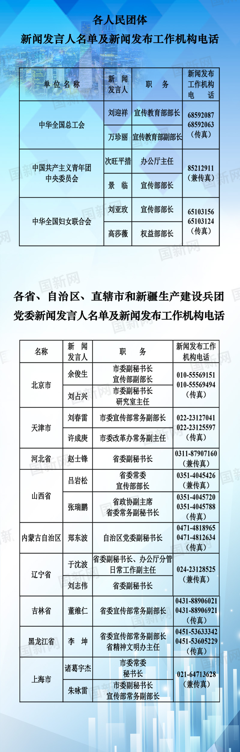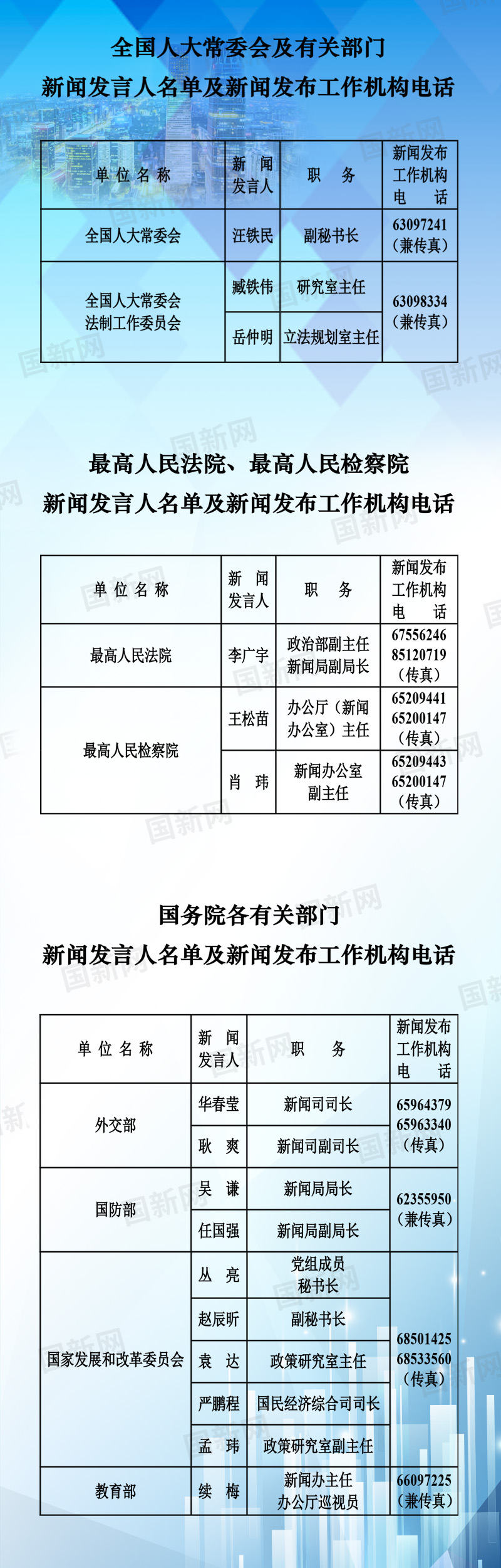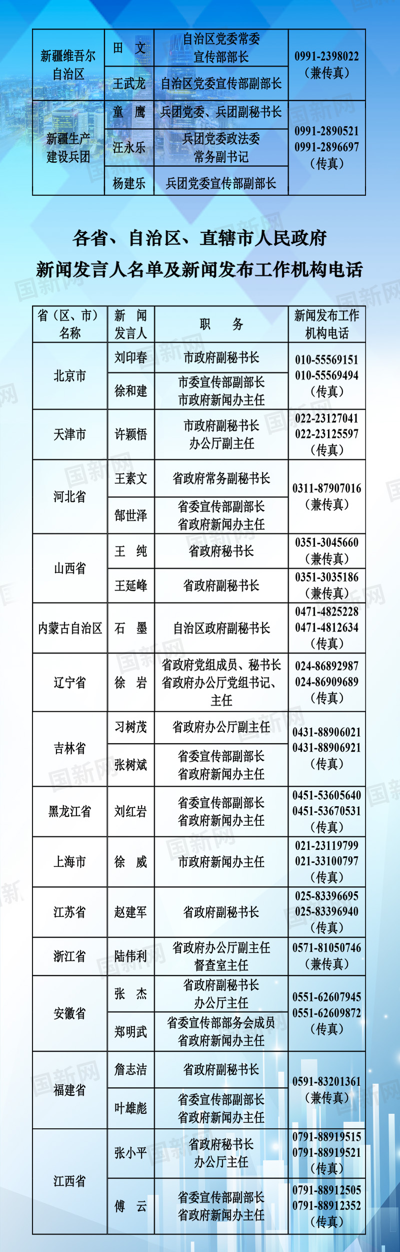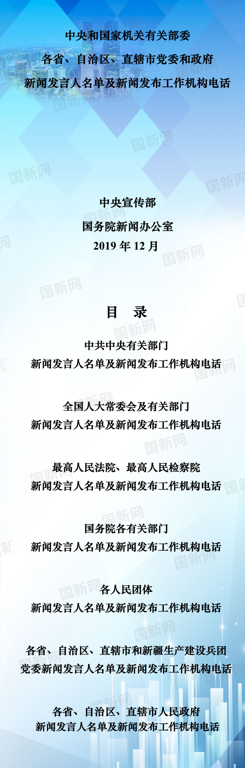 中央國家機關和地方2020年新聞發言人名錄-新華網