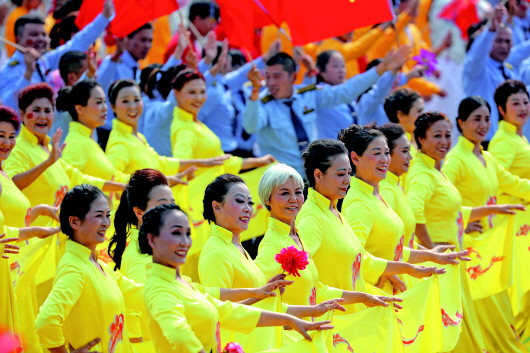 今年10月1日,天安門廣場的國慶群眾游行隊伍中,“美好生活”方陣的老年模特隊神采奕奕,模特隊隊員穿著淺黃色旗袍,邁著模特步,讓人眼前一亮。