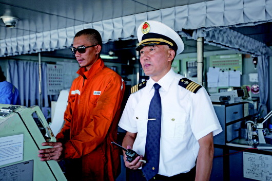 爬上外輪,他把船從頭到尾檢查一遍,然后與外籍船長進行交接。在接下去的幾個小時,甚至十幾個小時里,老姚幾乎全在駕駛臺前。眼睛緊盯著海圖和舷窗,耳邊是高頻電話。