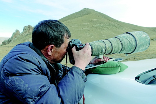 原來,那是鮑永清的“洞”。他悄聲告訴記者,現在一看見雪豹,自己還渾身發抖,就是頭一次拍雪豹落下的病根。