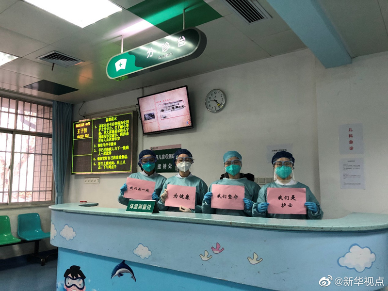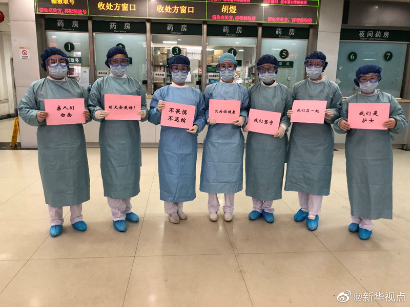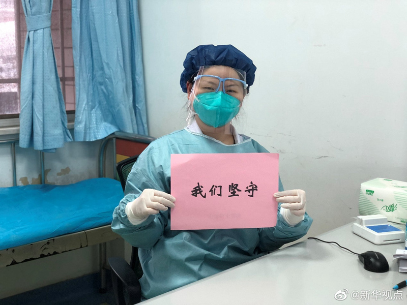 “不畏懼、不退縮”“我們堅守” “親人們,勿念?!背?,武漢同濟醫院兒科醫護人員在交班間隙拍了幾張特別的拜年照片發給家人和同事,為武漢市的醫務人員加油,也讓家人放心。除夕,本應是闔家團圓的時刻,但因為突如其來的疫情,許多醫務人員必須堅守在臨床第一線。為了讓父母放心,讓丈夫安心,也為了給全市堅守在最前線的醫護同行加油鼓勁,今天交班時,她們拍下了這樣一組照片。(記者李勁峰、胡喆)