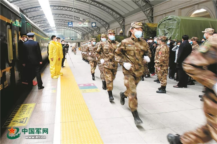 1月26日11時24分,T184列車載著解放軍緊急調撥的第一批防疫物資緩緩駛來,??吭跐h口火車站站臺。