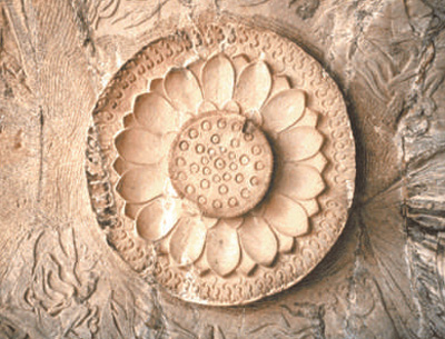 圖為云岡石窟蓮花及飛天。