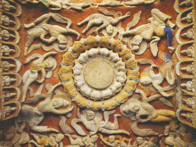圖為龍門石窟蓮花及飛天。