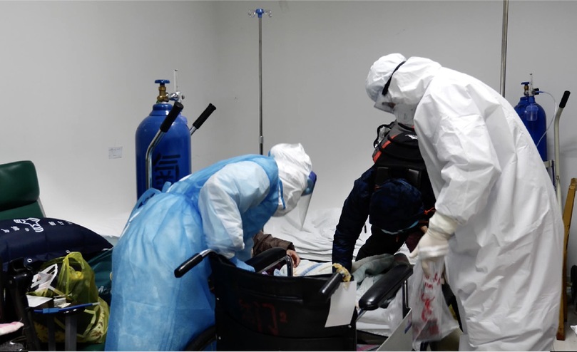 護士張梅在留觀室外,低聲說:“她真的很辛苦。父母都得了新冠肺炎,70多歲的父親已經轉入住院,她現在需要兩頭來回跑,照顧家人?!?/p>