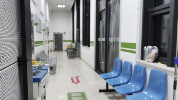 接診室區域還有一名護士站在入口,負責分診,此外,她還需要負責給外邊進來的人開門。