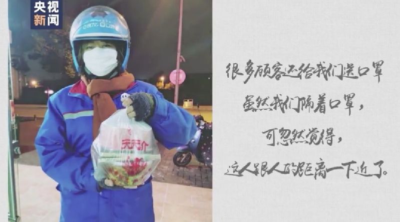 ????以前送餐的時候,最希望的就是顧客能理解我們,不管是點餐的顧客,還是小區物業值班的師傅都對我們非常好,很多顧客還給我們送口罩,雖然我們隔著口罩,可忽然覺得人跟人的距離一下近了。