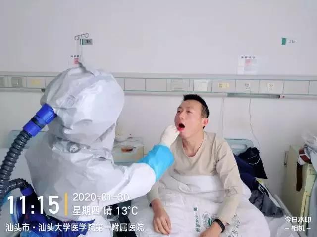 32歲的沈武富因感染新型肺炎在汕頭大學醫學院附屬第一醫院隔離治療,他用鏡頭記錄下自己的治療過程。