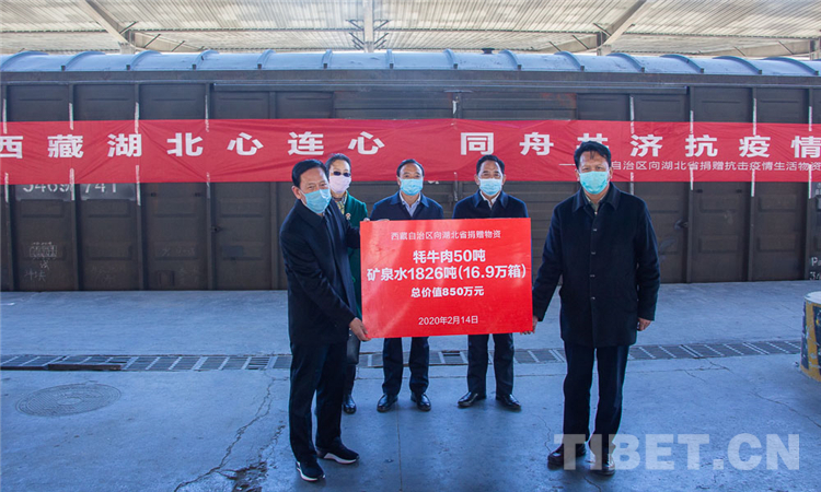 西藏自治區經濟與信息化廳副廳長安央金說:“疫情發生以來,始終牽動著西藏人民的心。為支援湖北省打贏疫情防控阻擊戰,西藏籌集了價值850萬元的天然飲用水和牦牛肉,這批物資帶著西藏人民的感恩之情,以最快的速度運抵湖北,武漢加油!湖北加油!”(中國西藏網 記者/趙二召 趙耀)