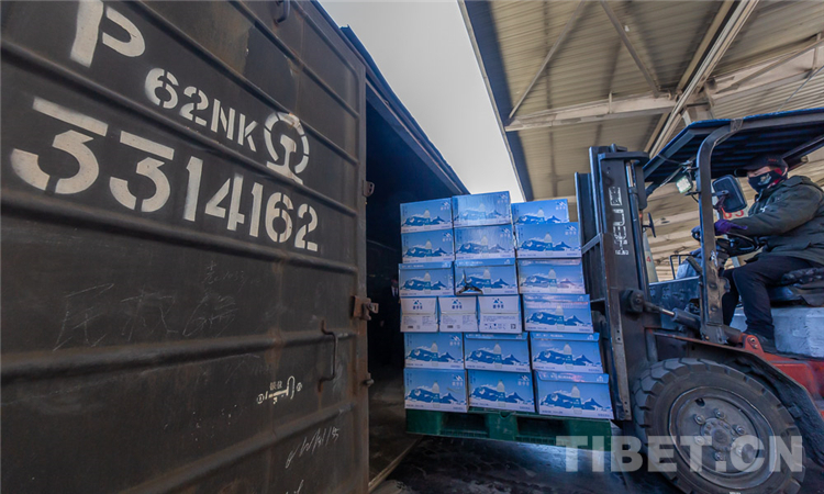 中國鐵路青藏集團有限公司拉薩車務段按照特事特辦、手續從簡、重點保證的原則,結合物資數量、尺寸、規格制定裝車方案,組織叉車等機械15臺、勞力100余人,精心組織、加班加點,四個多小時完成 16.9萬箱29車的裝車任務,預計2月19日物資到達湖北黃石、十堰市。
