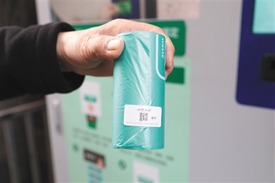 新街口街道大乘巷教師宿舍院給居民發放的廚余垃圾袋上印有二維碼,可查詢垃圾投放者。