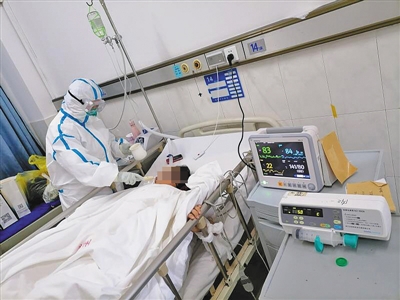 醫護人員正在為確診患者治療。荊州市胸科醫院供圖