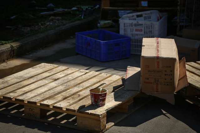 2月16日,湖北省武漢市,美菜武漢六倉外的泡面盒。中青報·中青網記者 趙迪攝