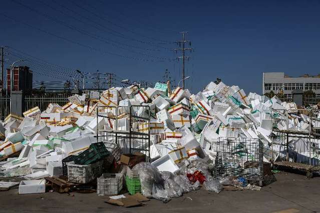 2月16日,湖北省武漢市,美菜武漢六倉外堆放的包裝盒。中青報·中青網記者 趙迪攝