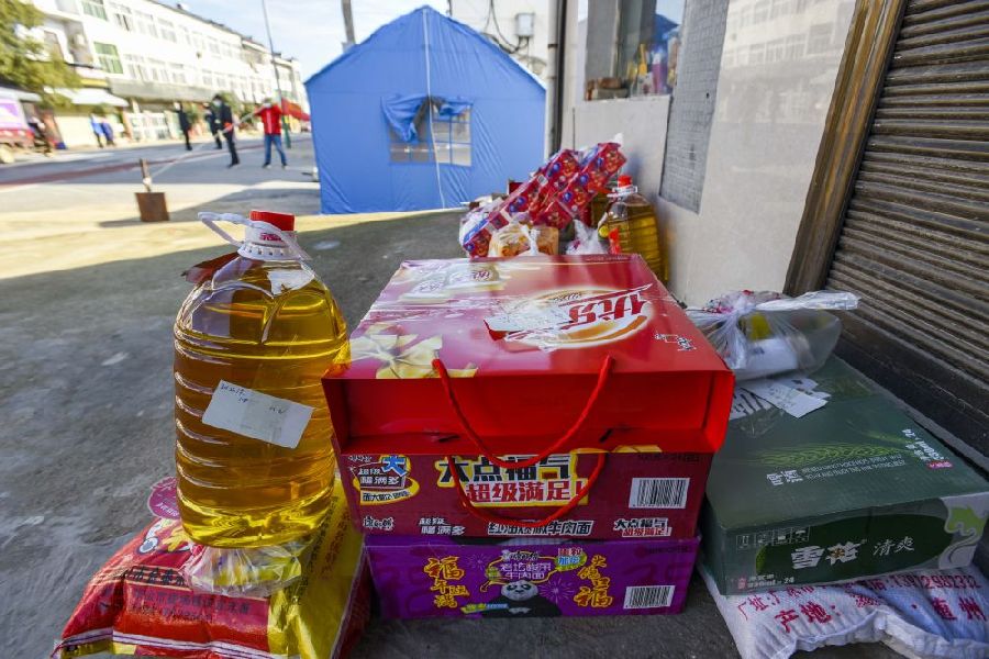 浐川村防疫工作人員為村民代購的生活物資。新華社記者 胡虎虎 攝