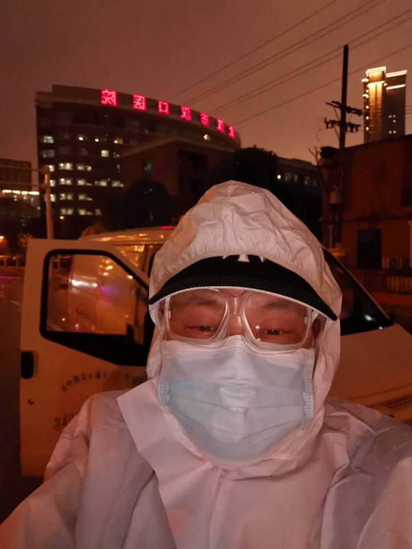 這些天來,我開車帶著社區的患者跑遍了漢口所有的定點醫院。由于車內空間密閉,我也擔心被傳染,每天都在高度緊張狀態下。在車內穿著防護服,戴著口罩,戴不戴護目鏡成了最大的問題——不戴吧,又擔心自己的安全沒有保障,戴上的話視野受影響,開車不安全。