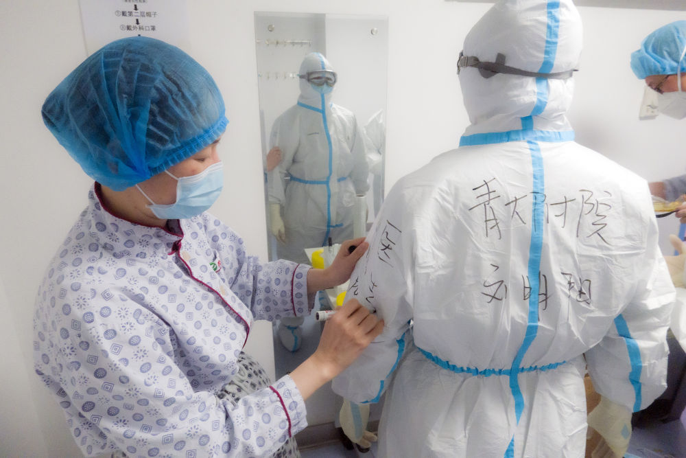 醫務人員按照標準流程有序進入病房污染區。