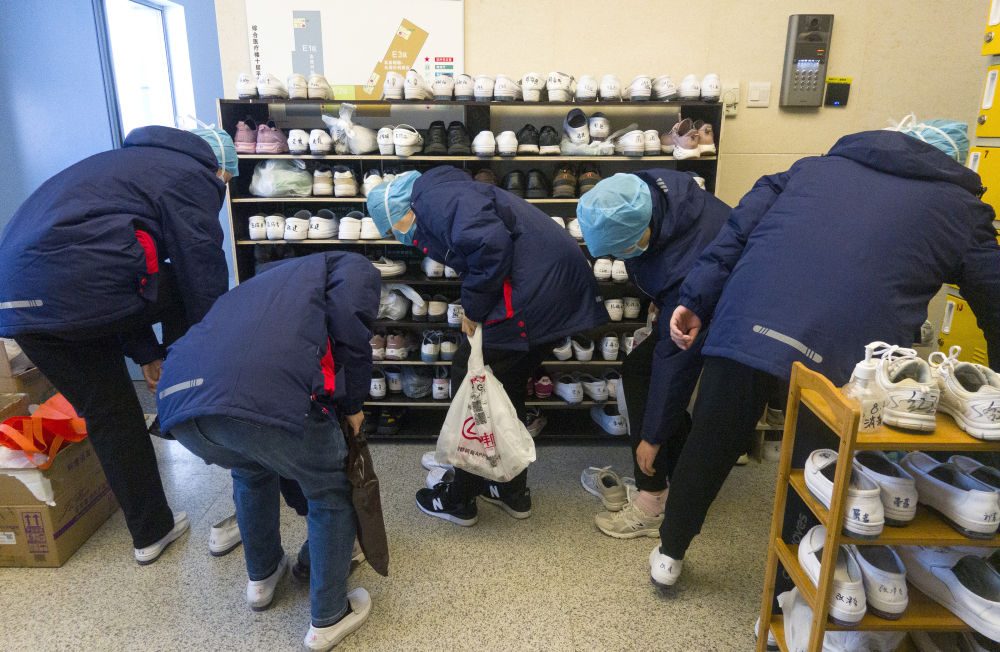 醫護人員下班后換鞋。