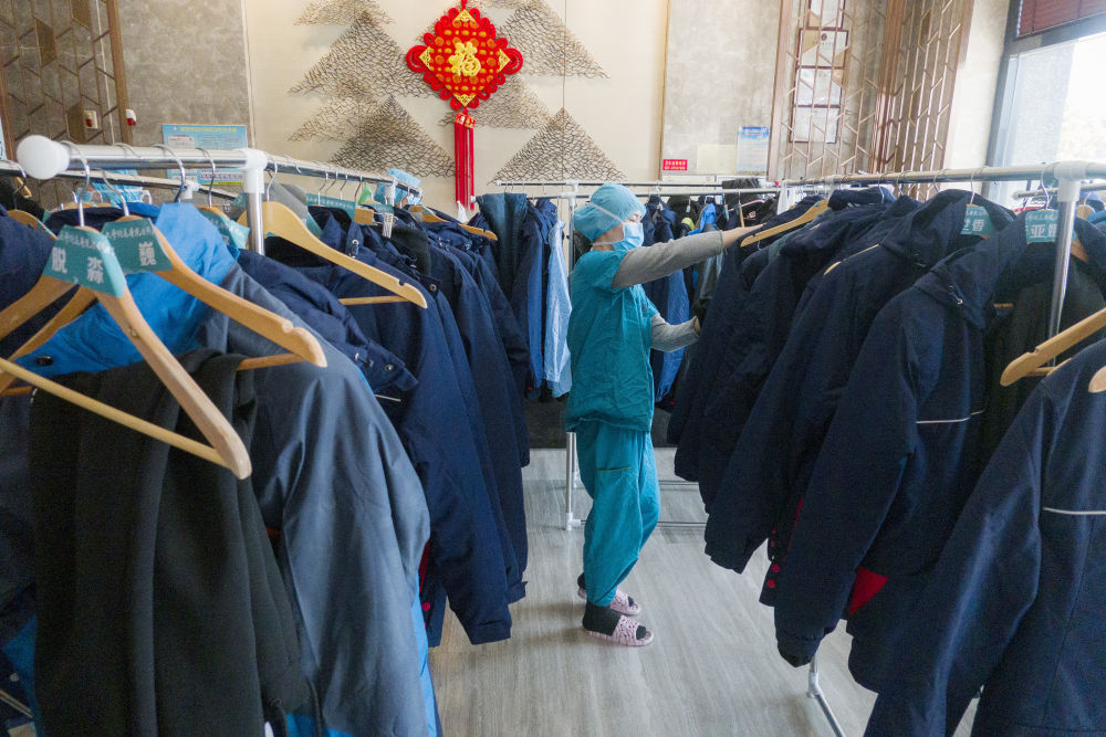 2月20日,回到酒店駐地的醫務人員按照生活駐地管理流程將外衣進行統一保管。