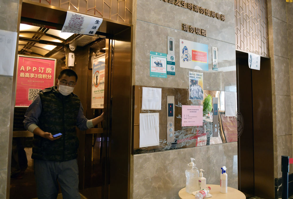 醫務人員對駐地酒店電梯按照生活駐地管理流程進行功能劃分,工作、生活分開乘用。