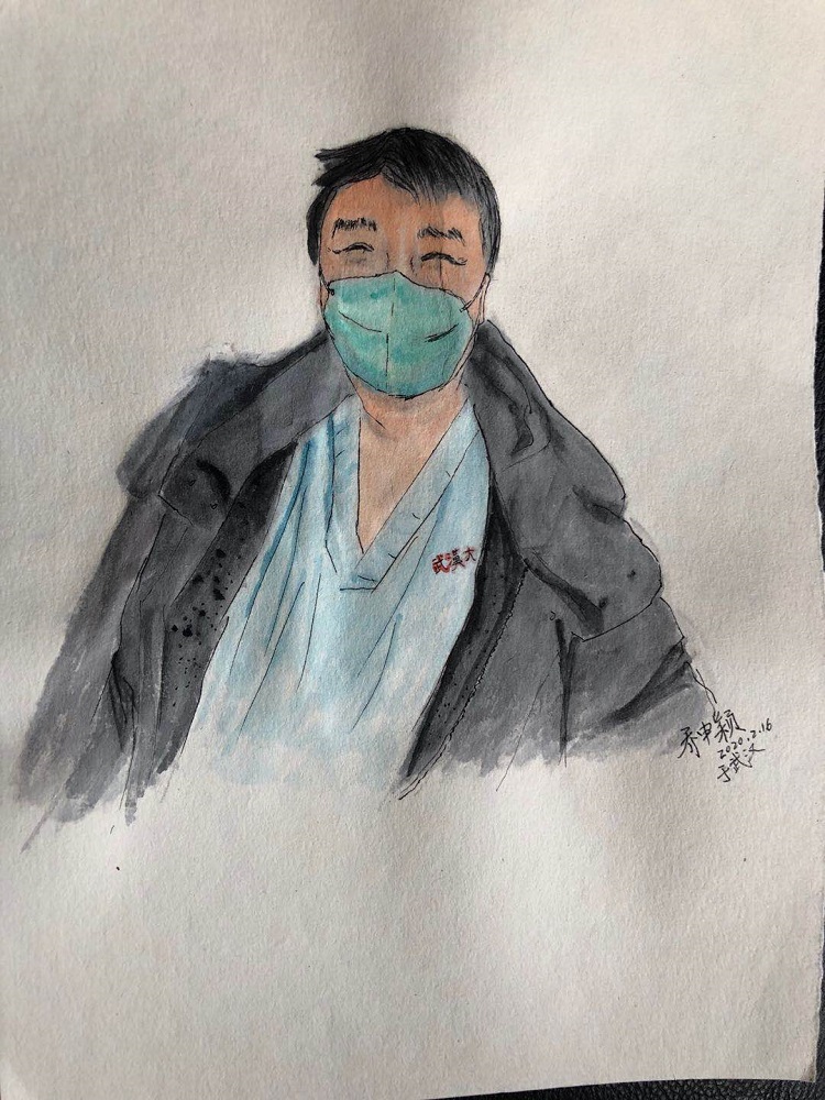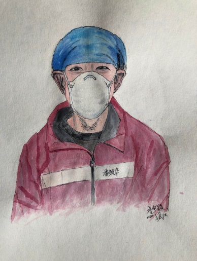 剛開始就是正常的寫稿拍視頻,隨著時間的推移,就特別想畫畫。這個城市里充滿了觸動心靈的瞬間,可能是一個笑臉,可能是一個手勢。我總覺得光是寫下來、拍下來,還遠遠不夠,只有把它畫下來,才真正能把我那一刻的感動也一起收藏起來。當時武漢根本買不到顏料,我請同事幫忙從北京帶過來,2月16號的時候開始畫。第一個想到的就是采訪過的醫護人員的笑臉。因為大家都崩得很緊,好多醫護人員采訪中說著說著就哭了。雖然對采訪來說可能是件好事,但我總感覺很愧疚,覺得為個采訪讓人又難過一次。后來就形成一個習慣,每次我都要問一個問題:今天有沒有開心的事呀?或者說:咱換個話題,說點高興的!他們給了我各種各樣的答案,但是不管是為什么高興,那一刻他們的笑容都特別燦爛特別美好。所以我把他們的笑畫了下來,希望更多的人能看到,能從中汲取力量。