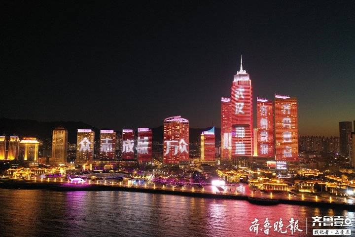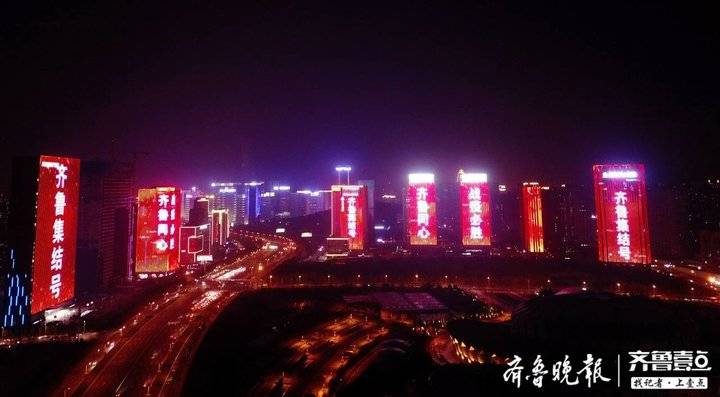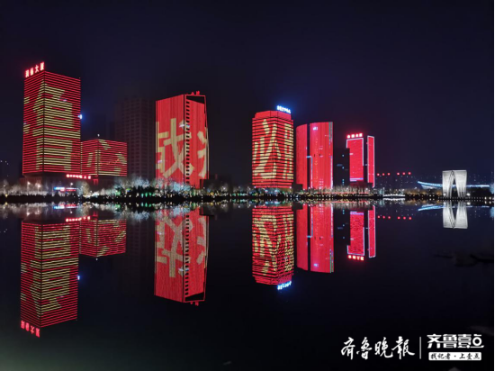 2月22日19時整至20時整,山東十六市的各大地標建筑在同一時間一起璀璨點亮。