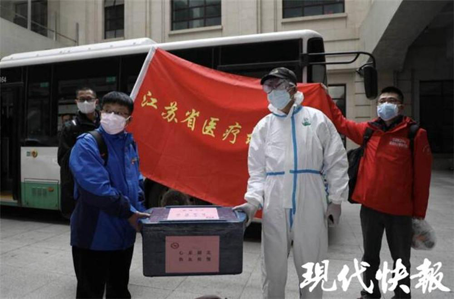 2 月 24 日下午 1 點 10 分,第 11 批江蘇援武漢醫療隊 31 人抵達武漢,他們將對新冠肺炎患者和一線醫護人員展開心理疏導。此外,他們還肩負著一項重要使命——來自江蘇的 3000 毫升康復者血漿,也隨隊運抵湖北。