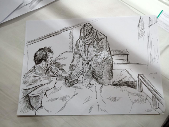 彭昕燁在方艙醫院所作的速寫 圖片由受訪者提供
