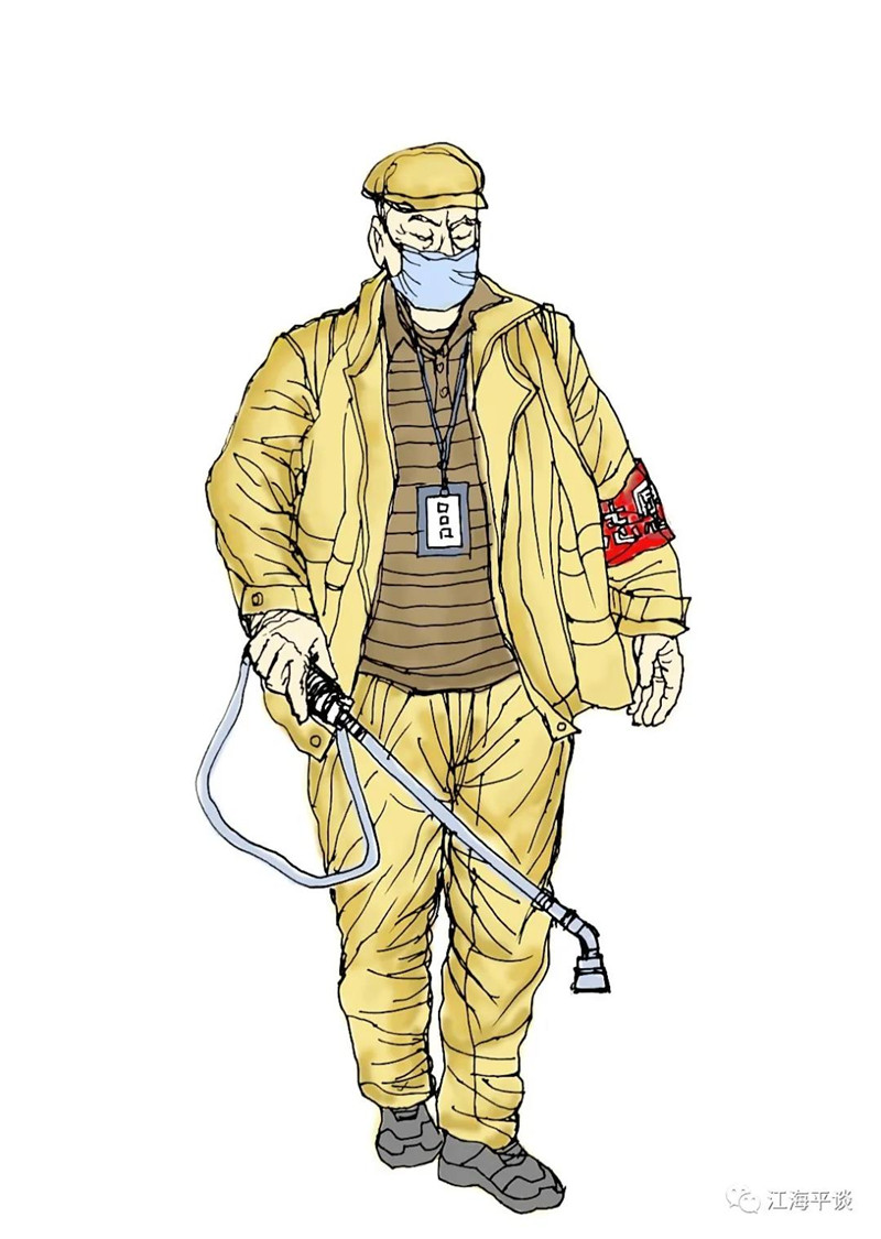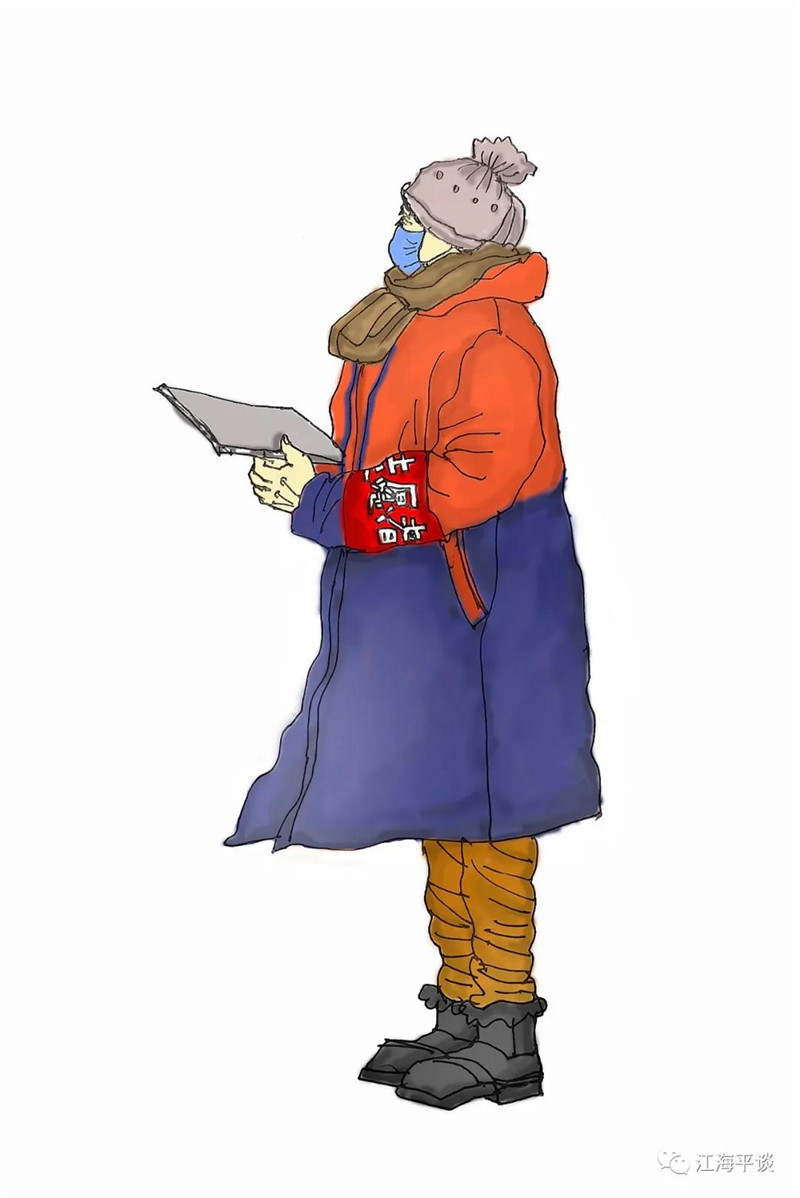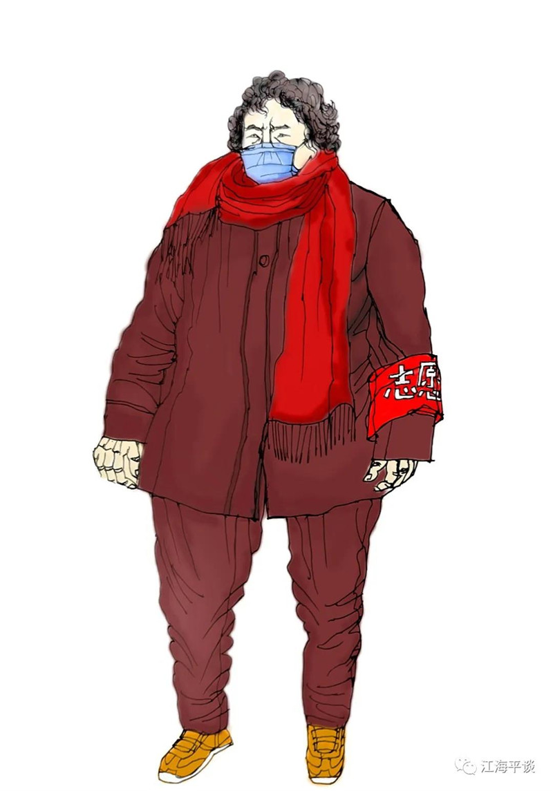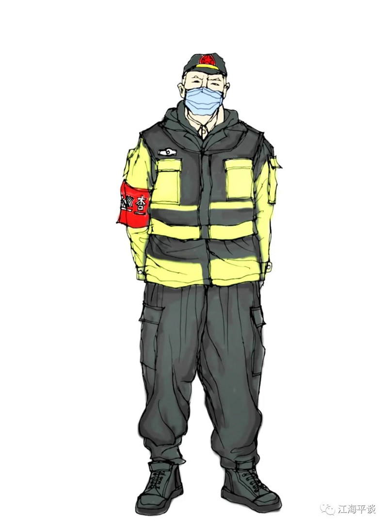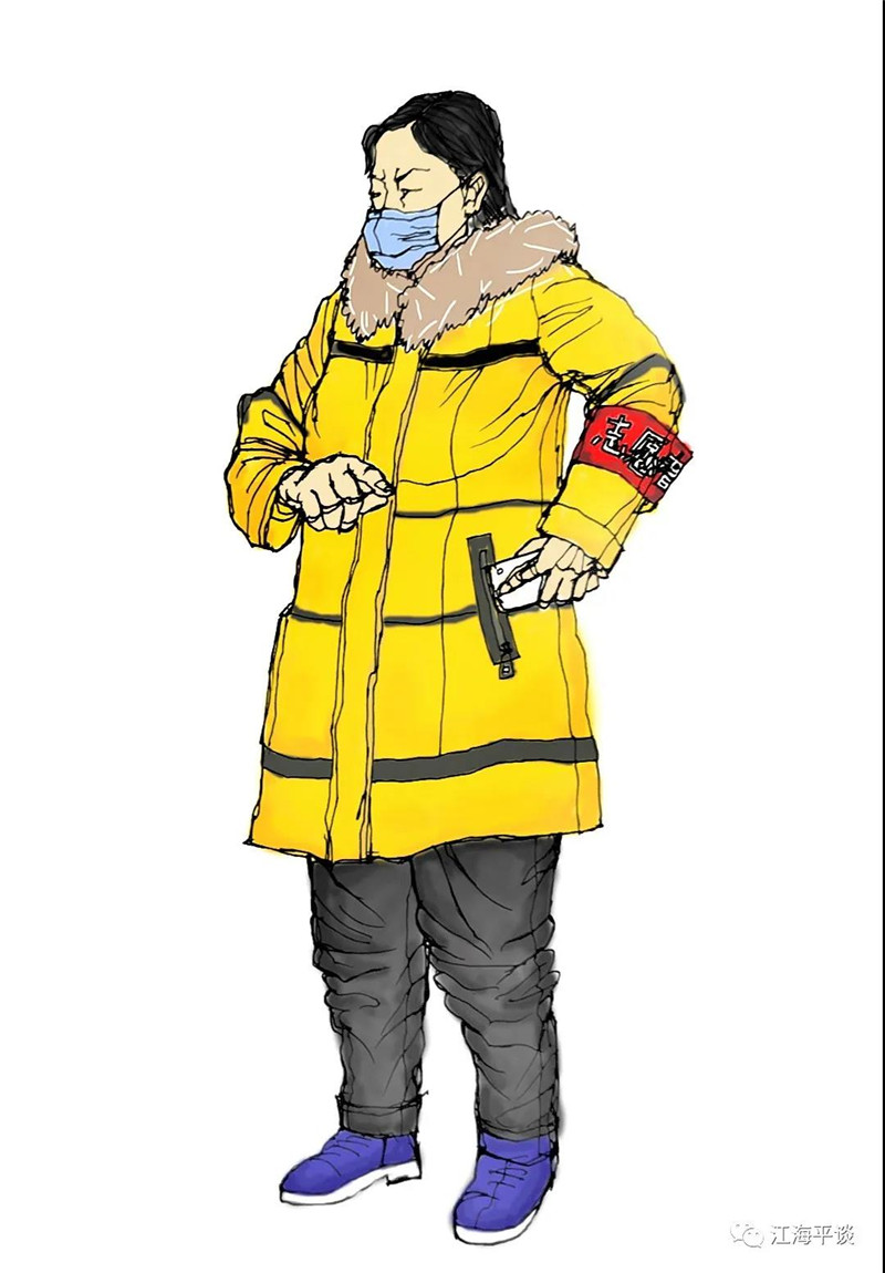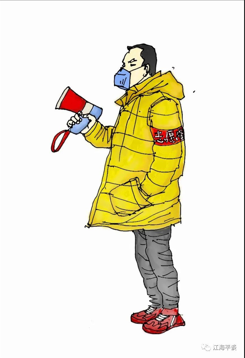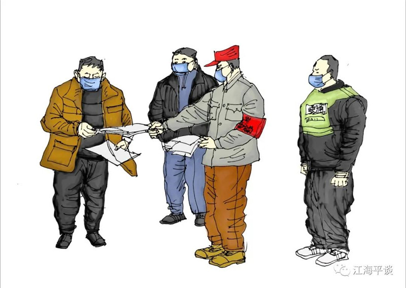 我用速寫的形式,把自己每天看到聽到的最動人的故事或場景記錄下來,組成了一幅幅“防控抗疫”的群英圖譜,特別是那些奮戰在一線的廣大醫務工作者以及在街頭巷尾,社區民宅忘我工作、無私奉獻的街道干部和志愿者是我描繪的主要對象。雖然,他們都是普普通通的人,但他們都做出了不平凡的事。他們是這個時代真正的英雄,也是這個時代最可愛的人!