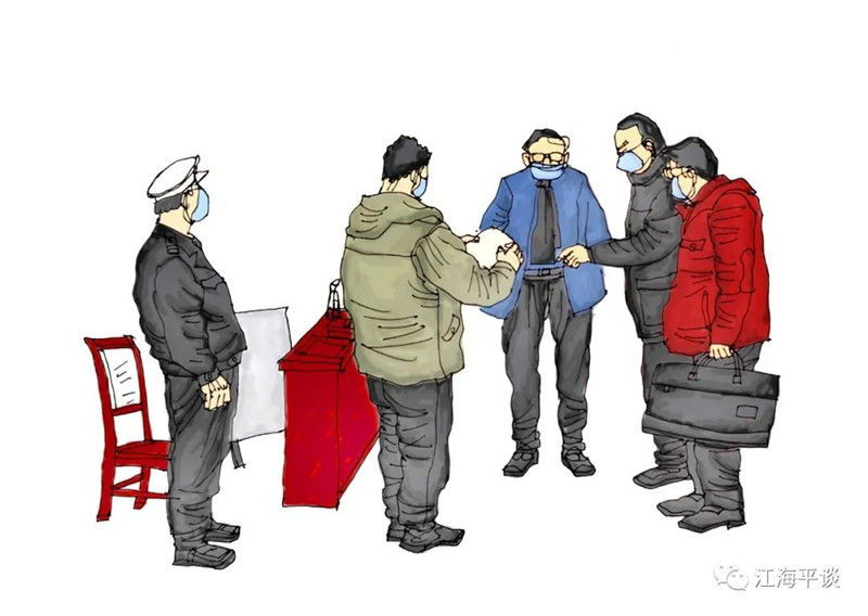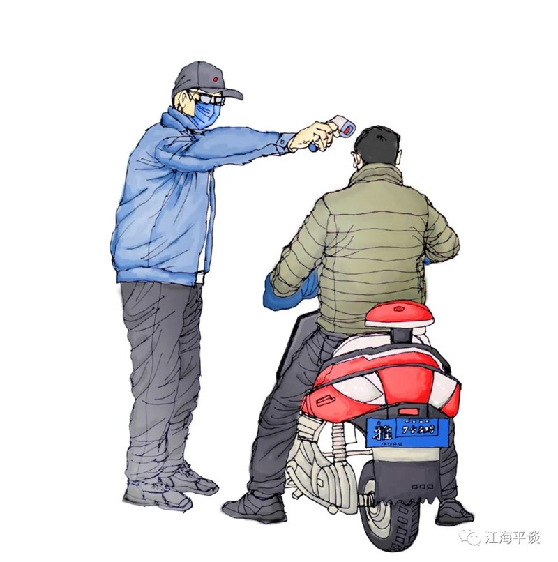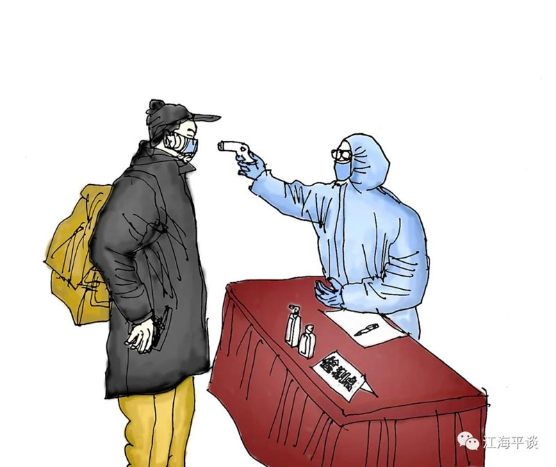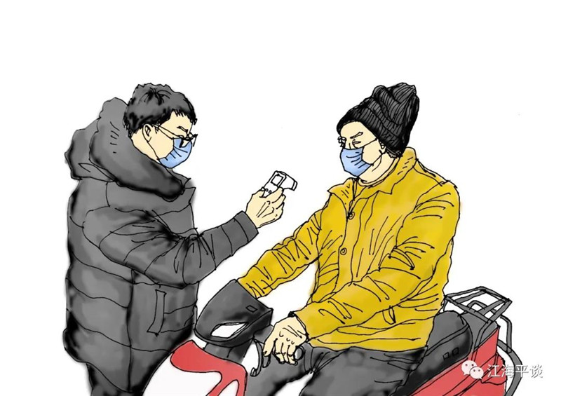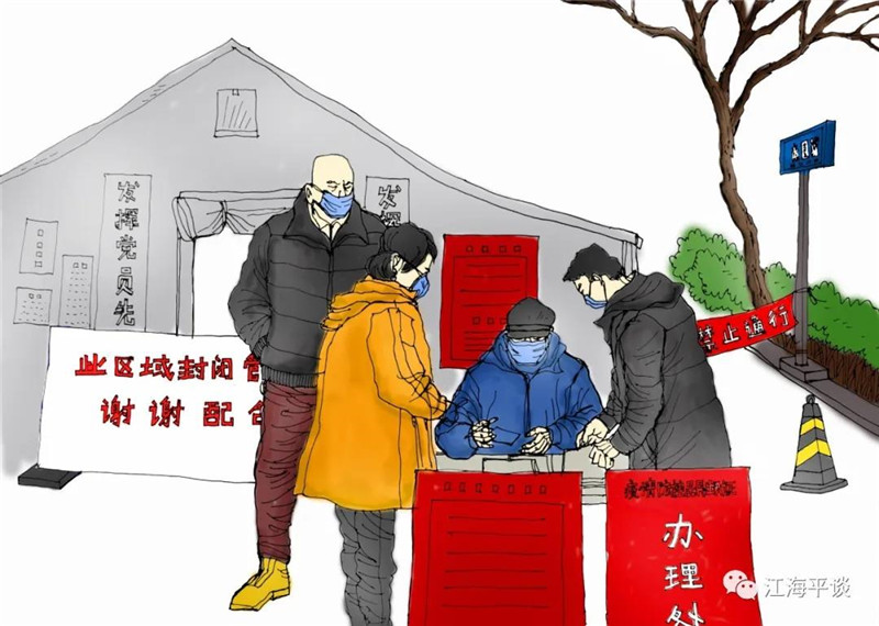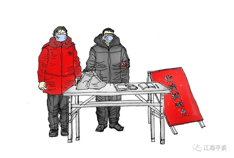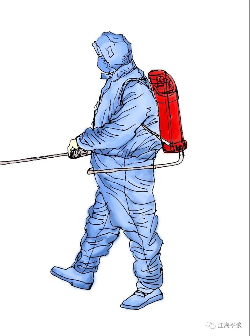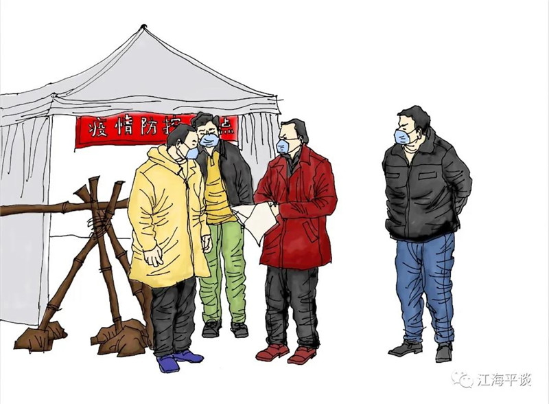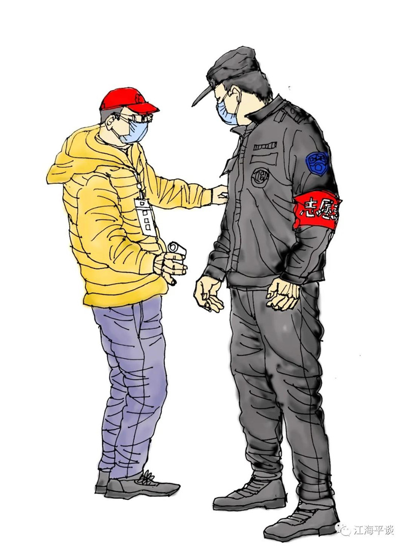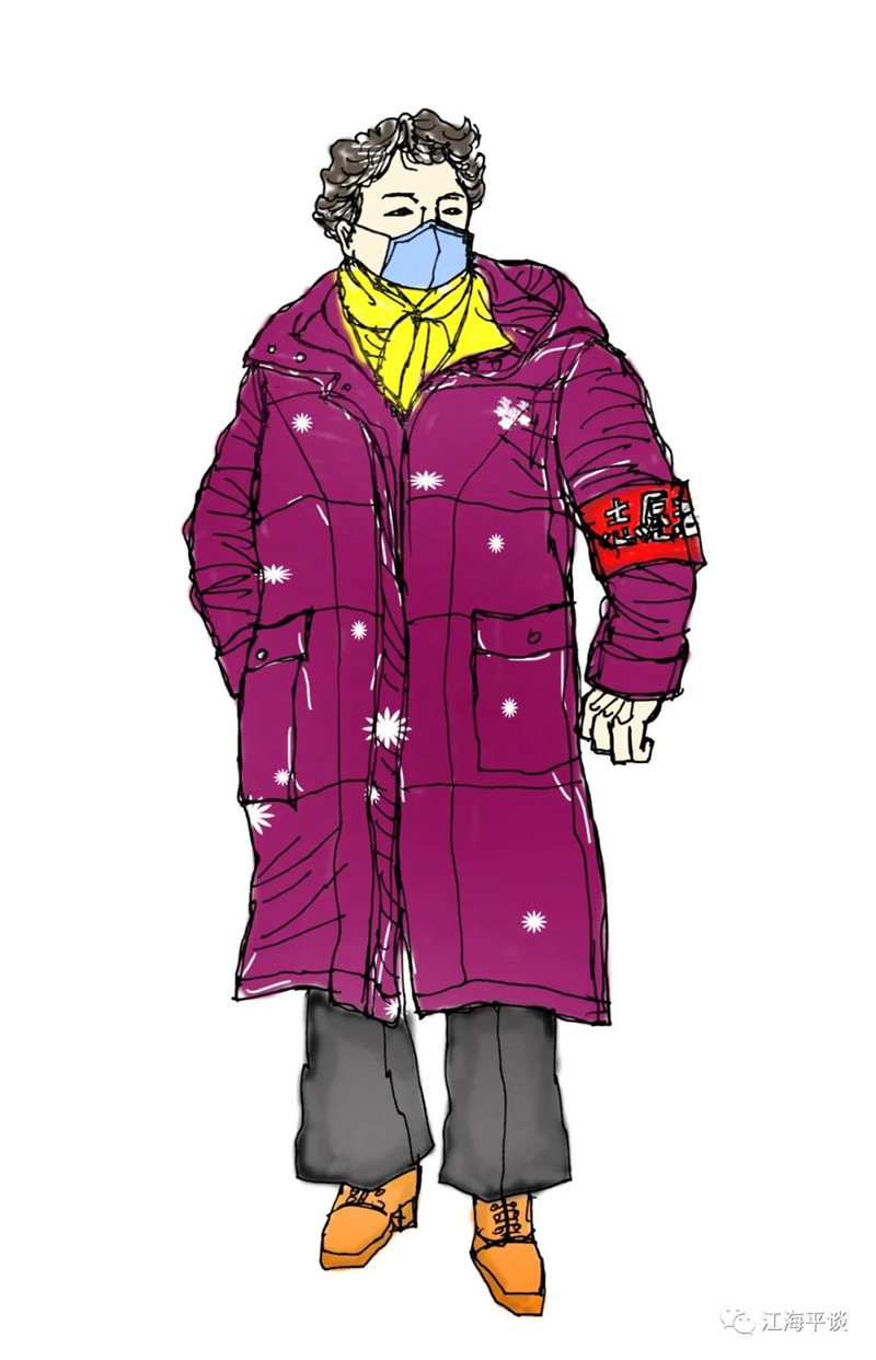 我用速寫的形式,把自己每天看到聽到的最動人的故事或場景記錄下來,組成了一幅幅“防控抗疫”的群英圖譜,特別是那些奮戰在一線的廣大醫務工作者以及在街頭巷尾,社區民宅忘我工作、無私奉獻的街道干部和志愿者是我描繪的主要對象。雖然,他們都是普普通通的人,但他們都做出了不平凡的事。他們是這個時代真正的英雄,也是這個時代最可愛的人!