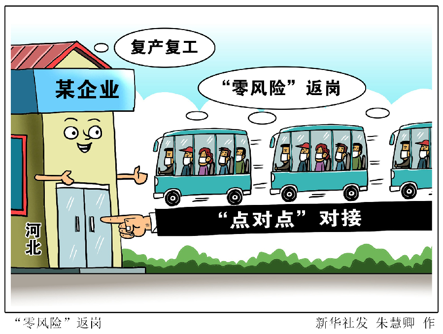 漫畫:“零風險”返崗 為確保務工人員“零風險”輸出和輸入,河北各地前移疫情防控三道防線,按照“全流程控管、全方位服務、全天候監測”的要求,精準定向為企業輸送務工人員,滿足企業復工復產和農民外出務工增收的雙重需求。 新華社發 朱慧卿 作