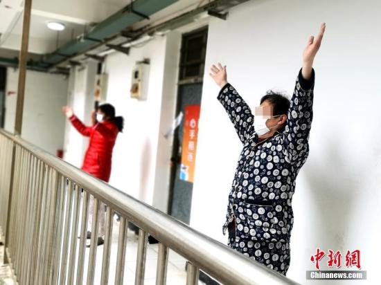 29日中午,作為康復期患者隔離點的武漢軟件工程職業學院5棟宿舍樓響起了音樂,人們戴上口罩走出房門,站在“口”字型走廊上練起八段錦和太極拳。