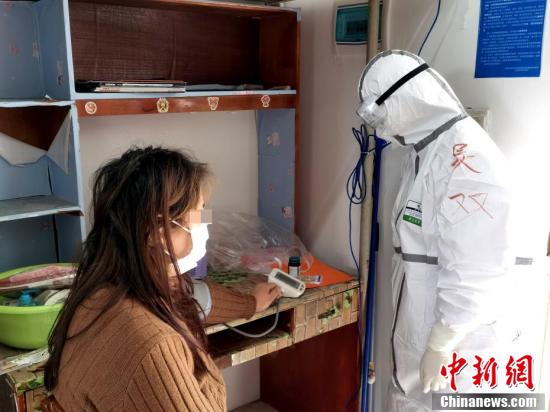 醫護人員為治愈出院患者測血壓。