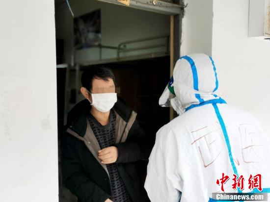 醫護人員向治愈出院患者了解身體狀況。