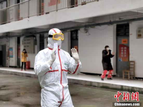 2月29日,中新網記者走進武漢軟件工程職業學院治愈出院患者隔離點進行探訪。武漢市新冠肺炎疫情防控指揮部日前發出的第16號通告,要求對治愈出院患者實施14天康復隔離及醫學觀察,武漢軟件工程職業學院治愈出院患者隔離點自21日起有出院病患入住,截至28日共收治了650余人。圖為治愈出院患者在練八段錦。