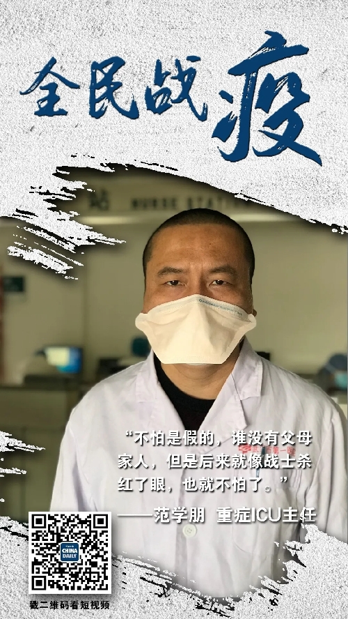 ????“把她的管子給我保護好,千萬不要讓管子脫,脫了以后會噴射?!彼蟹秾W朋,是武漢市第一醫院的醫生。直面病毒,與死神搶奪生命,在范學朋的抗疫戰場上,每一分鐘的工作都堪稱驚心動魄。