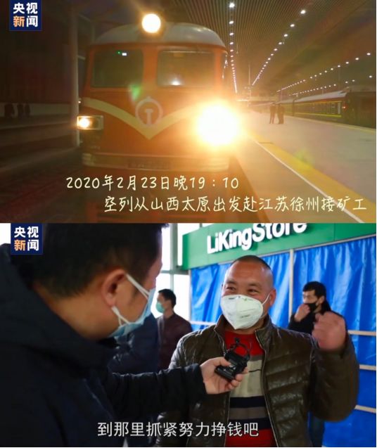 2月23日晚,山西朔州組織的復工專列,把606名煤礦工人從江蘇徐州接回朔州。這趟專列往返2000多公里,一路上有家人的牽掛,有疫情防控的壓力,更有對2020年春天滿滿的希冀和期待。