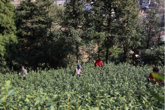 △浙江臺州安嶺鄉茶農在采摘茶葉