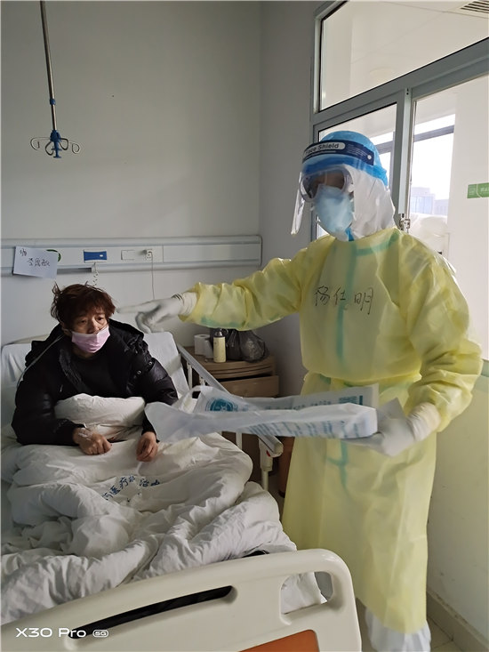 取咽拭子對操作者來說風險較大,他們就陪在年輕醫生身邊一起操作;高齡患者聽力不好,他們就俯身貼著老人耳朵講話;患者長期住院情緒不佳,他們就拉著患者跳舞、打太極……在他們的影響帶動下,患者積極配合治療,醫護人員也學會了如何與不同的病人溝通交流、如何處理棘手問題。